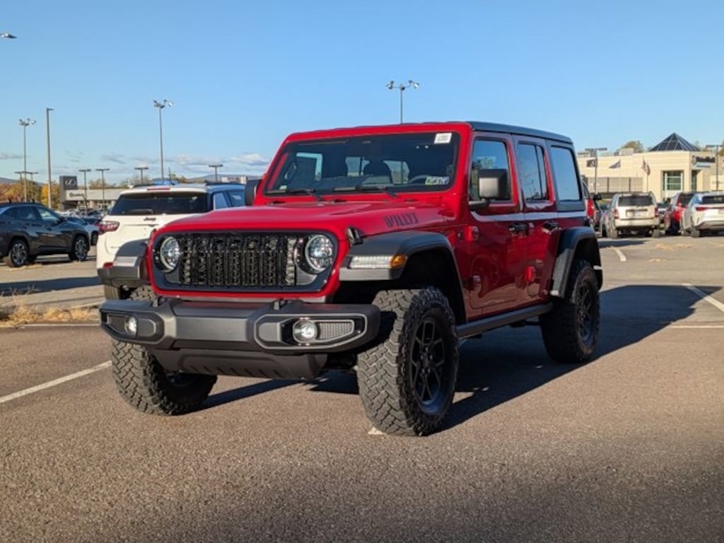 Convenience Group (2-Door Passive Entry, Front Door Locks, Air Conditioning w/Auto Temperature Control, Air Filtering, Cluster 7.0" TFT Color Display, Emergency/Assistance Call, Heated Front Seats, Heated Steering Wheel, Remote Start System, and Universal Garage Door Opener), Quick Order Package 22W Willys (4-Wheel Drive Swing Gate Decal, 7 & 4 Pin Wiring Harness, Advanced Brake Assist, Automatic Headlamps, Auxiliary Switches, Black Grille, Class II Receiver Hitch, Conventional Differential Front Axle, Corning Gorilla Glass, Dana M210 Wide HD Tube Front Axle, Dana M220 Wide Rear Axle, Daytime Running Lamps LED Accents, Deep Tint Sunscreen Windows, E-Locker Rear Axle, Enhanced Adaptive Cruise Control, Front LED Fog Lamps, Full Speed Forward Collision Warning Plus, Injection Molded Black Rear Bumper, LED Premium Reflector Headlamps, Mold In Color Bumper w/Gloss Black, Molded in Color Rubicon Highline Flare, MOPAR All-Weather Floor Mats, Off-Road Plus Mode, Power Heated Mirrors, Premium Wrapped Steering Wheel, Security Alarm, Sun Visors w/Illuminated Vanity Mirrors, Wheels: 17" x 7.5" Painted Black, Willy's Suspension, and Willys Hood Decal), Safety Group (Auto High Beam Headlamp Control, Blind Spot & Cross Path Detection, LED Taillamps, and ParkSense Rear Park Assist System), 4-Wheel Disc Brakes, 8 Speakers, ABS brakes, Air Conditioning, AM/FM radio: SiriusXM with 360L, Apple CarPlay/Android Auto, Aux Battery, Black 3-Piece Hard Top, Brake assist, Cloth Low-Back Bucket Seats, Compass, Delay-off headlights, Driver door bin, Driver vanity mirror, Dual front impact airbags, Dual front side impact airbags, Electronic Stability Control, Freedom Panel Storage Bag, Front anti-roll bar, Front Bucket Seats, Front Center Armrest w/Storage, Front fog lights, Front reading lights, Illuminated entry, Integrated roll-over protection, Jeep Trail Rated Kit, Low tire pressure warning, MyFlexCare Service Plan, Non-Lock Fuel Cap w/o Discriminator, Normal Duty Suspension, Occupant sensing airbag, Outside temperature display, Overhead airbag, Panic alarm, ParkView Rear Back-Up Camera, Passenger door bin, Passenger vanity mirror, Power steering, Power windows, Radio data system, Radio: Uconnect 5 w/12.3" Display, Rear anti-roll bar, Rear reading lights, Rear Window Defroster, Rear Window Wiper/Washer, Remote keyless entry, Speed control, Split folding rear seat, Steering wheel mounted audio controls, Stop-Start Dual Battery System, Tachometer, Telescoping steering wheel, Tilt steering wheel, Traction control, Trip computer, Variably intermittent wipers, and Wheels: 17" x 7.5" Black Steel Styled. *Your additional costs are sales tax, tag and title fees for the state in which the vehicle will be registered, any dealer-installed options (if applicable) and a dealer processing fee ($800 Maryland; not required by law); ($477 Pennsylvania). Prices are subject to change, and prior sales are excluded from these offers. While every reasonable effort is made to ensure the accuracy of this information, we are not responsible for any errors or omissions contained on these pages. Please verify any information in question with the dealer.